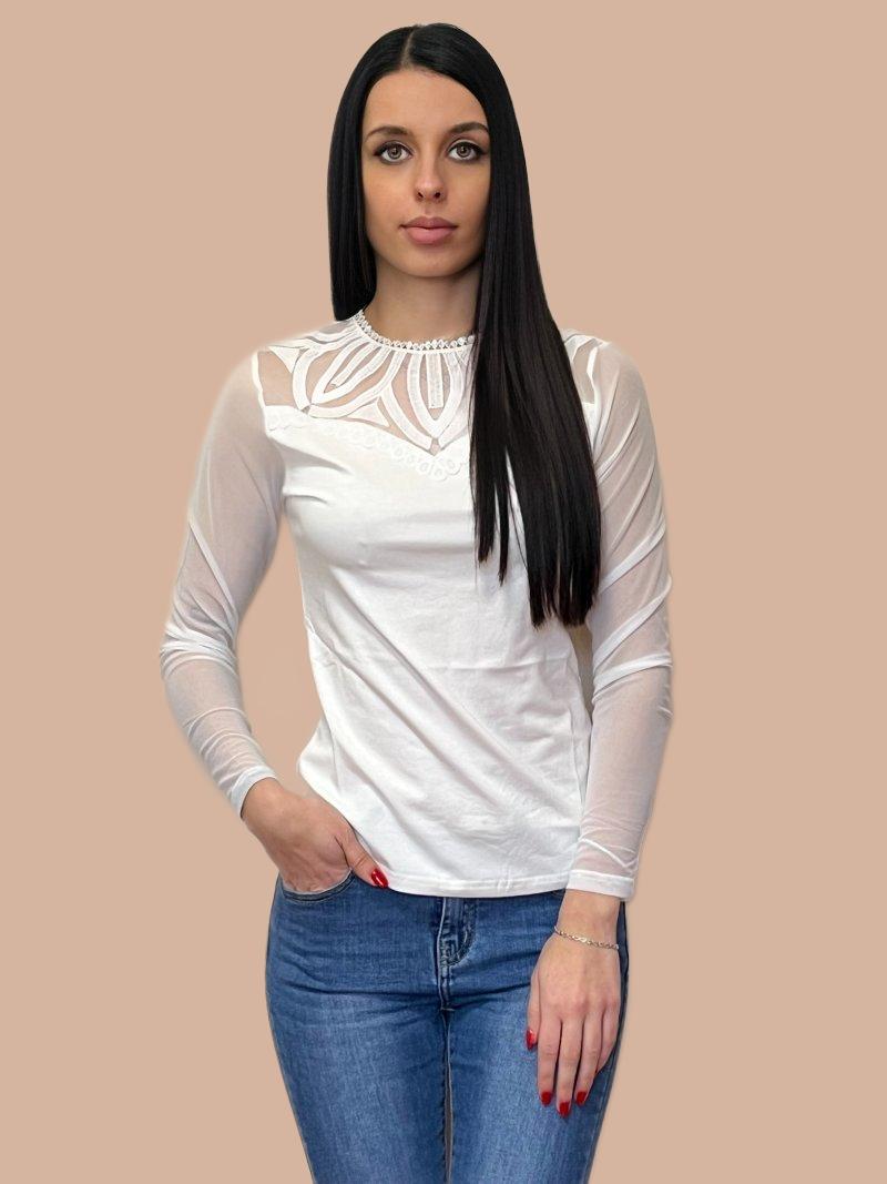 A fehér alkalmi női felső a letisztult elegancia és a nőies finomság tökéletes ötvözete. Elasztikus anyaga könnyedén idomul a test vonalaihoz, így kényelmes viseletet nyújt egész nap. A részben áttetsző betétek romantikus, sejtelmes kisugárzást adnak, amelyek kiemelik a nőiességet anélkül, hogy túlzóvá válnának. A tarkónál található gombos záródás diszkrét, mégis figyelemfelkeltő részlet, amely elegáns megoldást kínál. Fehér színe időtlen klasszikus, amely bármilyen kiegészítővel párosítható, így mindig más-más hangulatot teremthetsz vele. Válaszd ceruzaszoknyával és magassarkúval egy ünnepi eseményre, vagy kombináld nadrággal és finom ékszerekkel egy randin vagy vacsorán. Ez a felső ideális választás esküvőkre, színházi estekre, céges rendezvényekre és minden olyan alkalomra, ahol fontos a kifinomult megjelenés. A fehér alkalmi női felső garantáltan gardróbod egyik legkedveltebb darabjává válik, amelyben mindig magabiztos és különleges lehetsz.